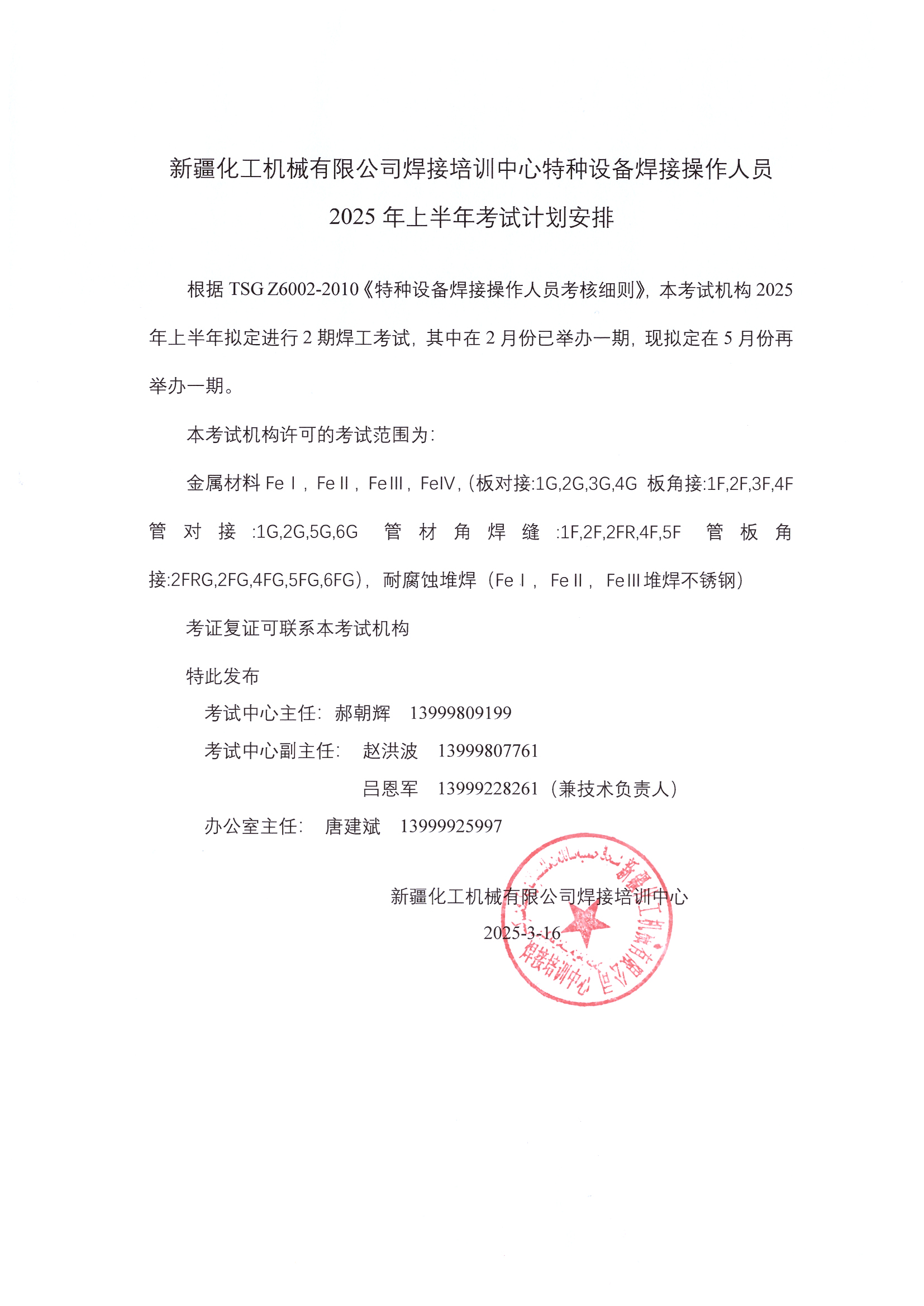 新疆化工机械有限责任公司焊接培训中心计划于2025年5月举办考试。
